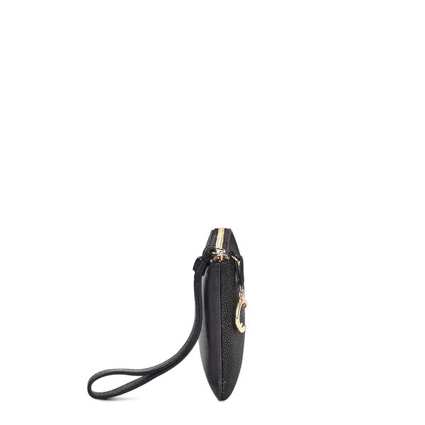 Wristlet wallet for women in genuine stingray leather. Practical design with short strap and hanging Cuadra monogram application. Secured with a zipper, it has two inner compartments for cards. Embellished with metallic Cuadra logo in the front.