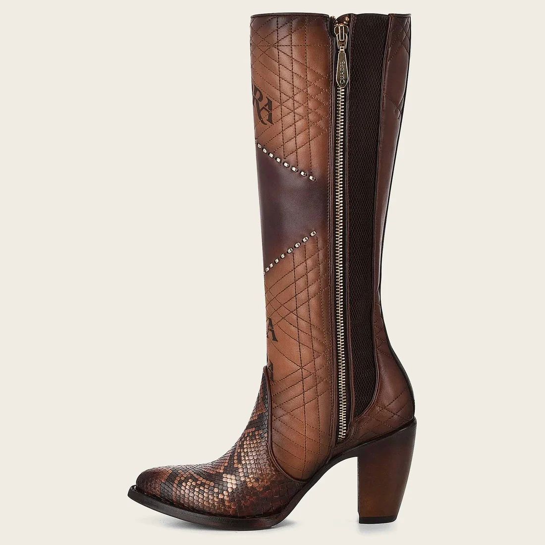 Step out in style with these women's tall boots, crafted from high-quality genuine python and bovine leather.