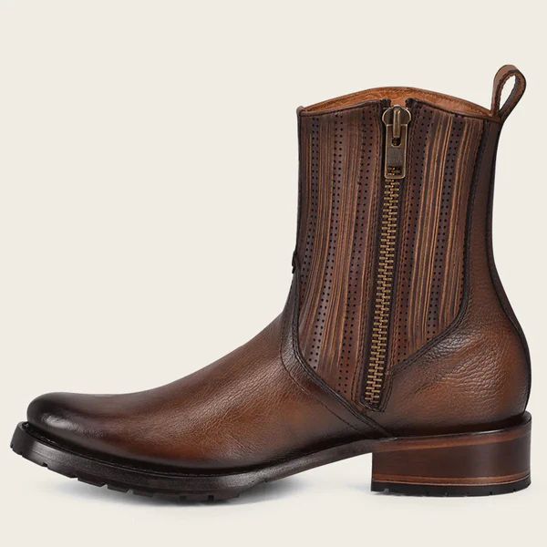 Crafted from fine bovine leather, these stylish men's urban boots it presents a unique Grooved Cowhide, hand-shaded leather style.