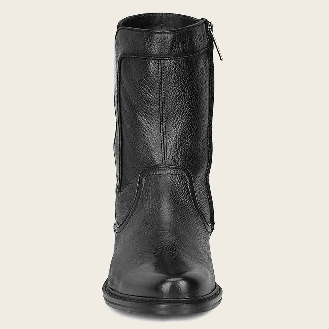 Men's dress boots in genuine deer leather. Minimalist design with metal application of the Franco Cuadra monogram on one side. Adjusted with internal closure. With leather sole with anti-slip TPU graft.